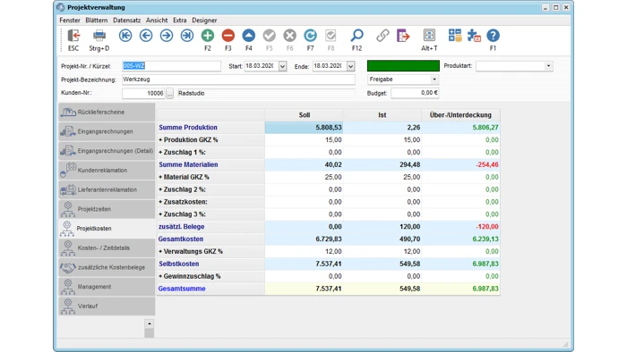 Bereits im Basis-ERP ist kann zuverlässig kalkuliert werden. Sind Ihre Anforderungen an die Produktionskalkukation höher, können Sie eine Kapazitätsplanung / MES integrieren.